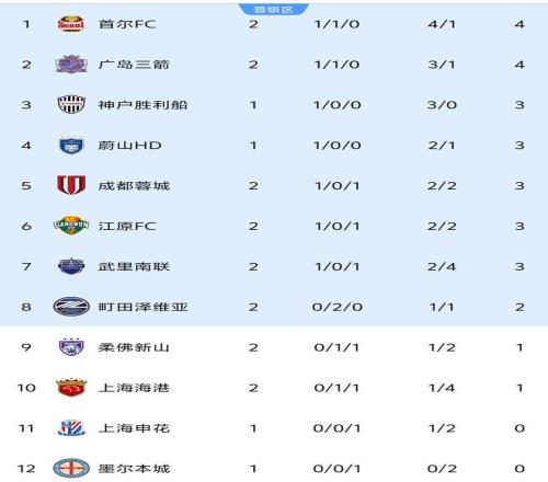 亞冠最新積分榜:2隊(duì)4分領(lǐng)跑,中超僅成都蓉城擠進(jìn)前8,上港第10
