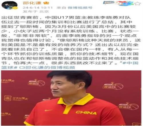 籃協(xié)干預郇思楠擇NCAA大學根源還得從李曉勇的一句話說起