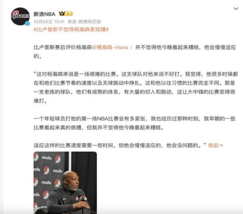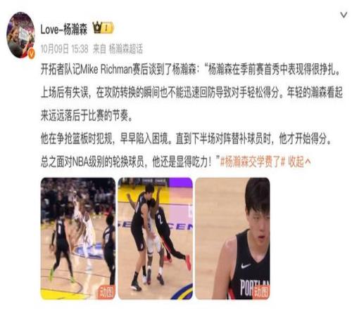 楊瀚森季前賽糟糕表現(xiàn)發(fā)酵,開拓者隊(duì)記表態(tài),教練說出心里話