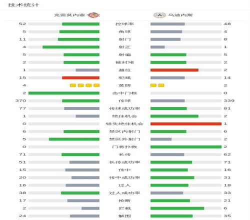 第4分鐘,克雷莫內(nèi)塞球員凡德佩特助攻菲利波-泰拉恰諾打入一球。 第51分鐘,烏迪內(nèi)斯球員扎諾利助攻扎尼奧洛打入一球。 球隊(duì)陣容 技術(shù)統(tǒng)計(jì) |