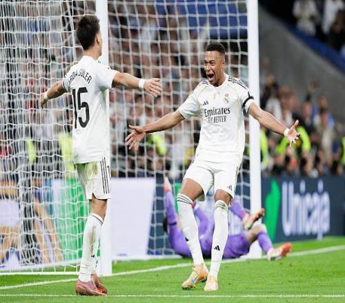 由維尼修斯領(lǐng)銜的進(jìn)攻線發(fā)起了一波波的攻勢(shì),并積極壓迫對(duì)手防線,是皇馬開(kāi)場(chǎng)第一分鐘起就占據(jù)絕對(duì)上風(fēng)的關(guān)鍵所在。此役維尼修斯除了點(diǎn)球沒(méi)能打進(jìn)之外,其余時(shí)間表現(xiàn)無(wú)可挑剔,他所在的左路繼續(xù)成為皇馬進(jìn)攻的源頭,巴西人與卡雷拉斯的配合也日漸嫻熟,兩人多次在左側(cè)打出精彩配合。下半場(chǎng)阿隆索再一次將皇馬7號(hào)提前換下場(chǎng),這一次維尼修斯在伯納烏的掌聲中欣然離場(chǎng),還在下場(chǎng)后主動(dòng)和主帥擊掌,完成了這場(chǎng)皆大歡喜的精彩表演。 賽前姆巴佩向伯納烏球迷展示了自己剛領(lǐng)取的歐洲金靴獎(jiǎng),以及西甲10月最佳球員獎(jiǎng)杯。個(gè)人榮譽(yù)盆滿缽滿的姆總也延續(xù)著自己進(jìn)球的腳步,先是點(diǎn)球命中打開(kāi)局面,就此走出國(guó)家德比失點(diǎn)陰影,隨后姆總又接到居萊爾助攻,打出精彩的凌空墊射破門(mén)。此役過(guò)后,姆總本賽季14場(chǎng)正式比賽已攻入18球,西甲11輪13球,數(shù)據(jù)爆炸程度絲毫不亞于皇馬時(shí)期的C羅;姆總連續(xù)第8場(chǎng)西甲破門(mén),放眼皇馬隊(duì)史也只在C羅一人之下。而本場(chǎng)為姆巴佩送出助攻的居萊爾近7次助攻都給了姆總一人,“居巴連線”已經(jīng)成為皇馬本賽季打開(kāi)局面的重要武器。