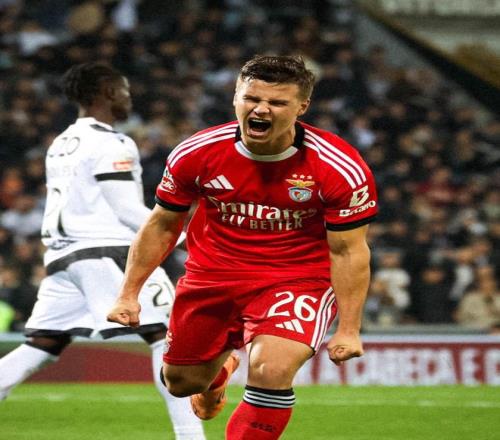 易邊再戰(zhàn),比賽僅僅開(kāi)打8分鐘,本菲卡就打破僵局??完?duì)開(kāi)出角球,托馬斯-阿勞霍在人群中高高躍起甩頭將皮球頂入遠(yuǎn)角,本菲卡1-0領(lǐng)先,取得了下半場(chǎng)夢(mèng)幻般開(kāi)局。