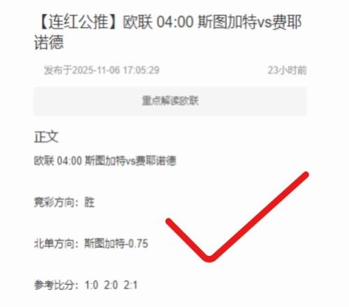 PP體育聯(lián)合競彩行業(yè)頭部機(jī)構(gòu),共同打造【競彩分析欄目】,整合專業(yè)分析師團(tuán)隊(duì)與賽事版權(quán)資源,構(gòu)建覆蓋文字、視頻、直播的全方位競彩生態(tài)。欄目定位于“數(shù)據(jù)驅(qū)動(dòng)+專業(yè)解讀”,服務(wù)于彩民與體育迷的雙重需求。 點(diǎn)擊下方掃碼進(jìn)入PP體育有料主頁,查閱更多精準(zhǔn)賽事分析 昨日回顧 昨日公推斯圖加特再次成功拿下!近期公推繼續(xù)連紅!私廚方面!超級(jí)王牌皇家貝蒂斯穩(wěn)穩(wěn)拿下近17中16!今日PP有料團(tuán)隊(duì)調(diào)整狀態(tài)繼續(xù)奉上足球賽事/澳超等精選賽事!同時(shí)想了解更多詳細(xì)內(nèi)容可添加下方客服!