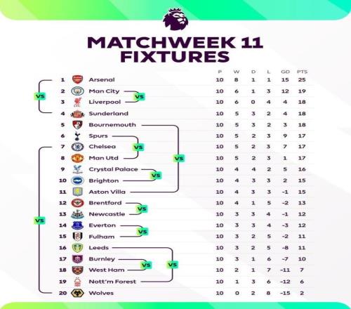 據(jù)Squawka數(shù)據(jù)統(tǒng)計(jì),截至目前,歐洲五大聯(lián)賽中只有兩名球員完成了25次以上的攔截,他們分別是萊比錫中場(chǎng)塞沃爾德和切爾西中場(chǎng)莫?jiǎng)P塞多的。 消息來(lái)源:Squawka 4 - 豪門(mén)對(duì)拼 本周末將迎來(lái)英超第11輪的較量,賽前英超官方用一張圖表清晰展示了本輪交手各隊(duì)的名次對(duì)比之列的。