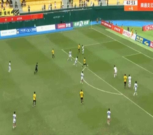 第54分鐘,南通支云連續(xù)頭球擺渡,球打在姜積弘的腿上反彈,葉道馳勁射破門,南通支云迅速扳平比分。被扳平比分之后,廣州豹在積分榜上回到第三位。
