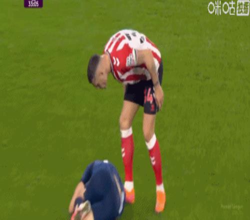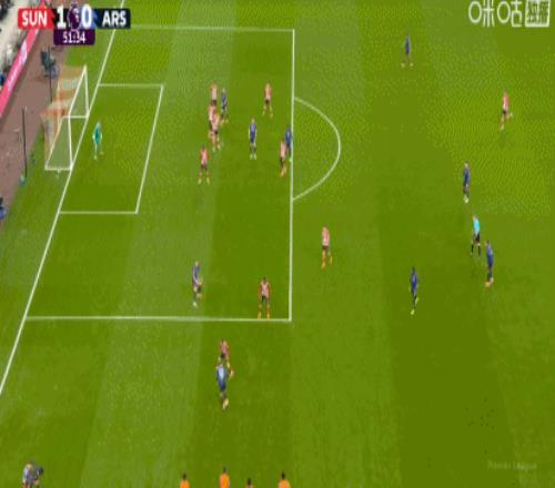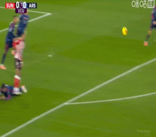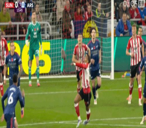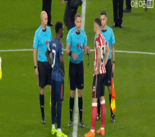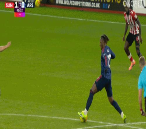 第34分鐘,扎卡被判犯規(guī),隨后欲找倒地的梅里諾理論