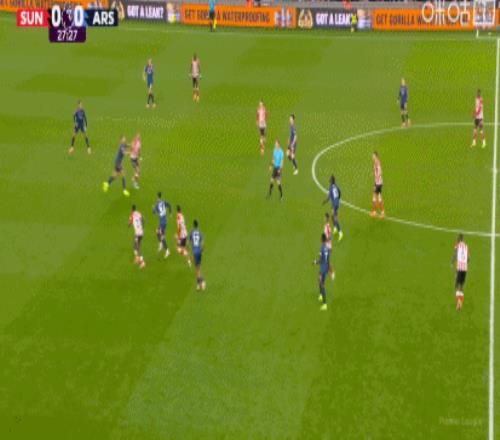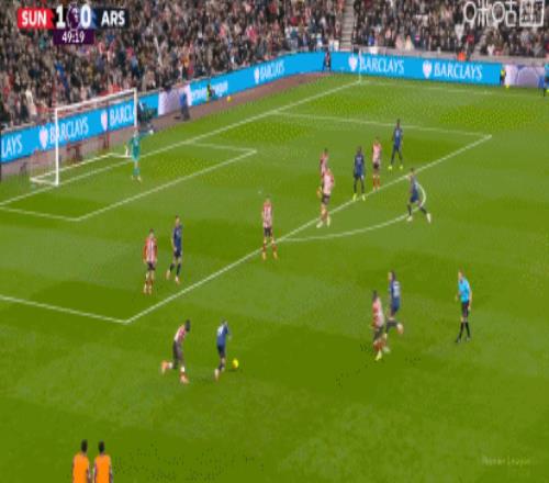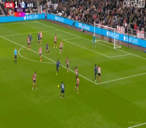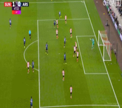 第25分鐘,桑德蘭后場(chǎng)失誤,埃澤得球兜射打高