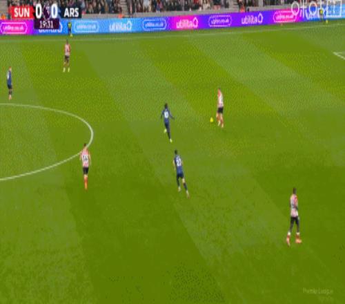 第53分鐘,蘇比門迪做球,薩卡跟進(jìn)打門偏出