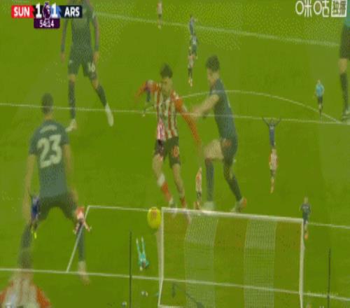 第54分鐘,賴斯前場(chǎng)強(qiáng)硬斷球,緊接著梅里諾助攻薩卡破門,阿森納1-1!