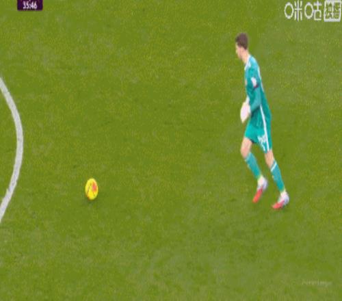 第45+3分鐘,薩利巴禁區(qū)內(nèi)迎球打門,放了高射炮