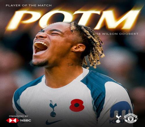 在周六晚進(jìn)行的英超第11輪比賽中,熱刺主場2-2戰(zhàn)平曼聯(lián),賽后,奧多貝爾被評為熱刺隊內(nèi)本場比賽的最佳球員。