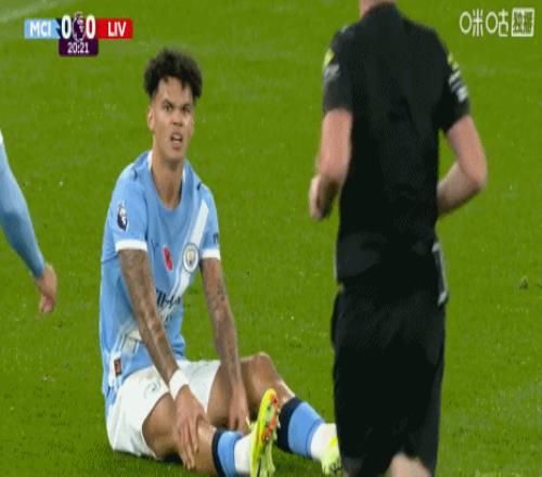 上咪咕獨家看英超 第90分鐘,索博斯洛伊撞倒福登,被黃牌警告