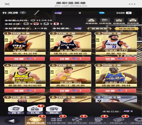 NBA英雄2票選本賽季撲克牌來了! 現(xiàn)役聯(lián)盟球星,你會把票投給誰? 強強對決。阿杜歐文和文班,誰晉級! 每天免費1票!投票后還能贏取寶箱!