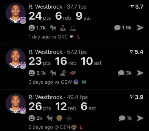 看完今天全部比賽的柚子 鑒于威少前幾場打首發(fā)時那樣炸裂的表現(xiàn) 一度連續(xù)3場打出20+5+5數(shù)據,老驥伏櫪 成為NBA歷史達成此成就里最高齡的控衛(wèi) 所以,柚子對國王與森林狼一戰(zhàn)預期甚高
