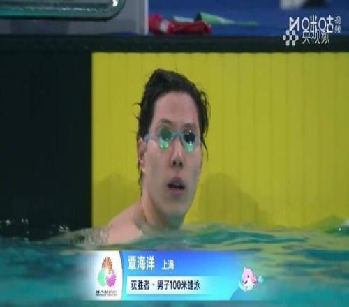 全運會男子100米蛙泳:覃海洋游出58秒98,成功奪金