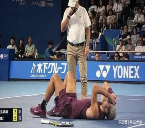 9月30日,阿爾卡拉斯和弗里茨在一個月之內(nèi)再次交鋒,這一次的舞臺是ATP500東京站決賽。此前第一輪比賽,阿爾卡拉斯與阿根廷新一代矮腳虎巴埃斯交鋒,突然扭傷了左腳踝,疼痛難忍,幾乎不能堅持比賽了。但是頑強不屈的阿爾卡拉斯呀,輕傷不下火線,不僅堅持打完比賽,而且兩盤戰(zhàn)勝對手。