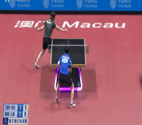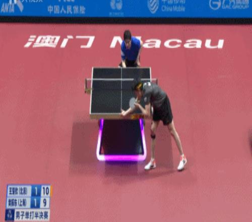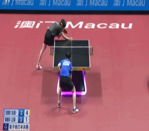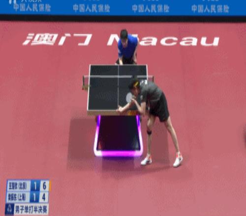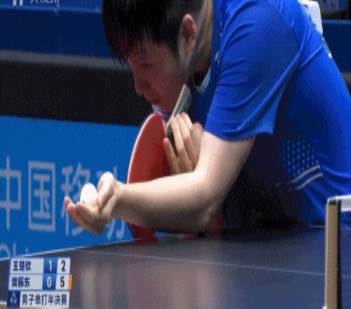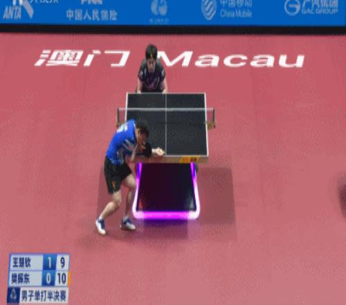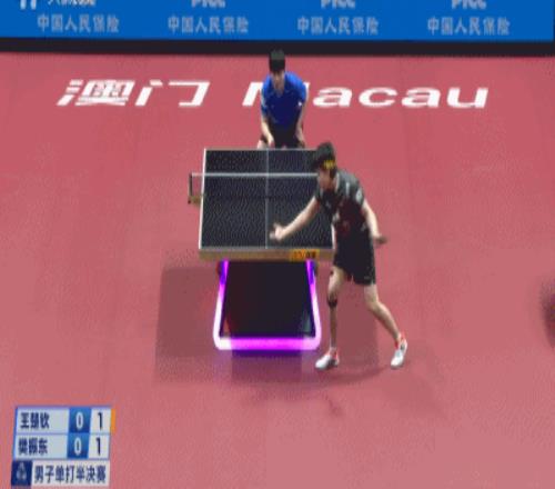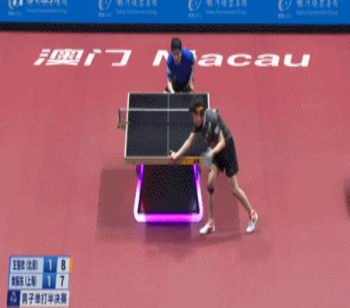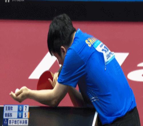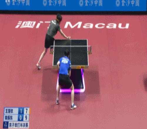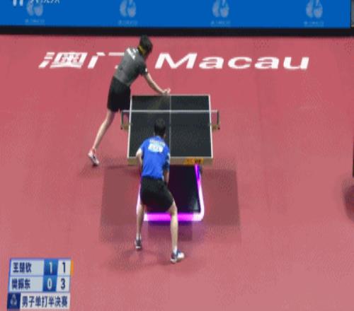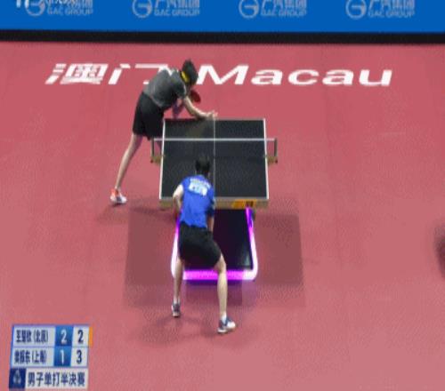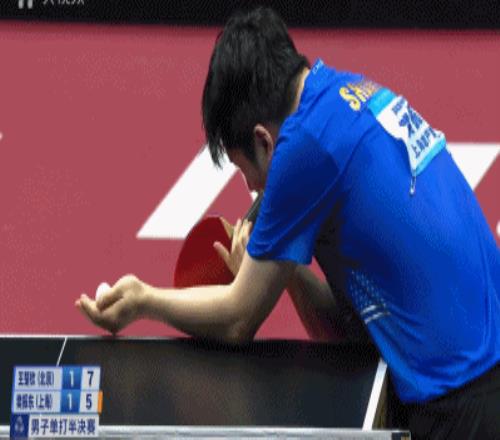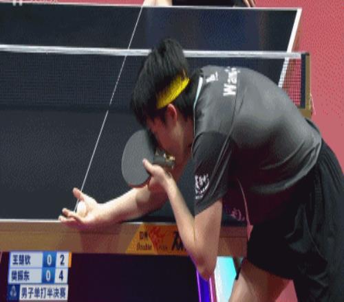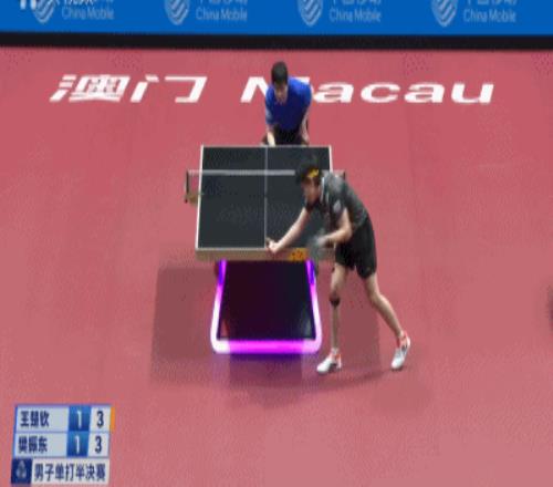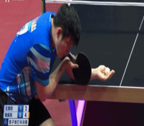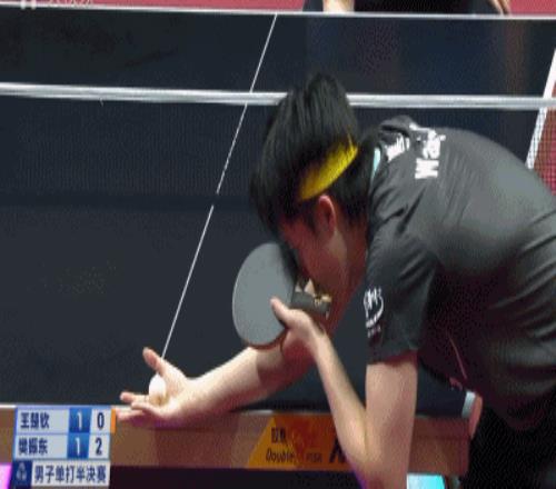 王楚欽的倒地爆沖總有種一錘子買賣的感覺…… 后面被王楚欽連續(xù)兩個倒地爆沖(上臺一個被防回去一個)之后,樊振東變了一個長球,又被王楚欽直接側(cè)身得分。