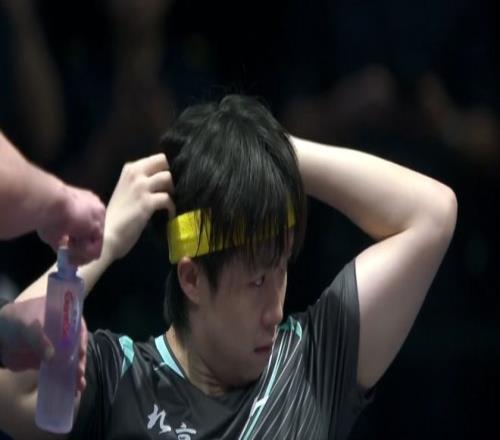 于是這球晃到王楚欽,側(cè)身失誤了。 第五局 樊振東額前的頭發(fā)已經(jīng)被汗水徹底弄成了一坨二維碼,上一局一結(jié)束樊振東就向裁判申請換掉差不多已經(jīng)被汗水打濕到貼身的衣服。 局分打平,但這時候場面已經(jīng)開始向樊振東傾斜。他高拋的變化開始給王楚欽壓力,加上王楚欽只用一套發(fā)球,到現(xiàn)在變化都抖摟差不多了,前三板的形勢此消彼長,讓樊振東的戰(zhàn)術(shù)更單純:盡量擰起來打相持——然后就是一波開局6-2領(lǐng)先。王楚欽追到6-4,樊振東叫了暫停;之后到了7-5,樊振東這個高拋又出場了:這次是個死轉(zhuǎn)直線下旋。