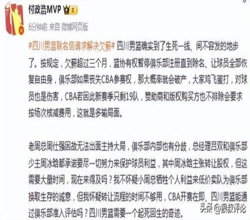 北京時間11月19日,四川男籃爆發(fā)欠薪風(fēng)波引發(fā)外界的關(guān)注,特別是全體球員聯(lián)名上書中國籃協(xié)討薪,幾乎可以說處于被點燃的邊緣。 媒體人付政浩發(fā)文點評:四川男籃確實到了生死一線、間不容發(fā)的地步了。按規(guī)定,欠薪超過三個月,籃協(xié)有權(quán)暫停俱樂部注冊直到除名、讓球員全部恢復(fù)自由身,俱樂部如果喪失CBA參賽權(quán),那大概率就會破產(chǎn),大家雞飛蛋打,對球員也是傷害,CBA若因此新賽季只剩19隊,贊助商和版權(quán)購買方也不排除會要求按場次核減費用,這就是多輸局面。 老周總周仕強因故無法出面主持大局,俱樂部內(nèi)部也有分歧,總經(jīng)理呂雙和俱樂部少主周冰晗都承諾要盡一切努力來保護球員利益,其中周冰晗主張轉(zhuǎn)讓股權(quán),但這需要大量時間,現(xiàn)在來得及嗎?我不懷疑小周總犧牲個人利益來低價賣隊為俱樂部換取生存的誠意,但我懷疑轉(zhuǎn)讓流程的時間不夠用,CBA開賽在即、四川男籃能通過俱樂部準(zhǔn)入評估嗎?四川男籃需要一個起死回生的奇跡。 三個月前,球員抱著死馬當(dāng)活馬醫(yī)的態(tài)度在CBA注冊表壓哨簽字,相當(dāng)于給了俱樂部三個月時間來解決問題。但三個月過去了,俱樂部財務(wù)狀況仍未好轉(zhuǎn),球員信心已消耗殆盡,這才發(fā)聯(lián)名信懇請中國籃協(xié)和四川省體育局出面幫忙解決問題。 眼下,球員已經(jīng)把欠薪問題擺在明處,轉(zhuǎn)圜的余地變小,四川男籃方面如果還沒有別的辦法,籃協(xié)也只能按規(guī)章處置。如果俱樂部自己搞不定準(zhǔn)入,最務(wù)實的辦法可能就是請四川省體育局出面斡旋,先凍結(jié)債務(wù),把俱樂部托管起來,保住CBA參賽權(quán)是當(dāng)務(wù)之急。 |