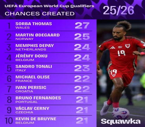 那不勒斯據(jù)悉非常有興趣簽下梅努,而這位球員自從進入曼聯(lián)一線隊以來表現(xiàn)出色。然而,梅努與他以前隊友的聯(lián)系被認為是推動這筆轉會的關鍵因素。 消息來源:米蘭體育報 2 - 英格蘭賽事的隊員發(fā)揮真不錯 本屆世歐預小組賽已經(jīng)打好,squakwa也統(tǒng)計了本屆賽事創(chuàng)造機會情況,多位名將在列。