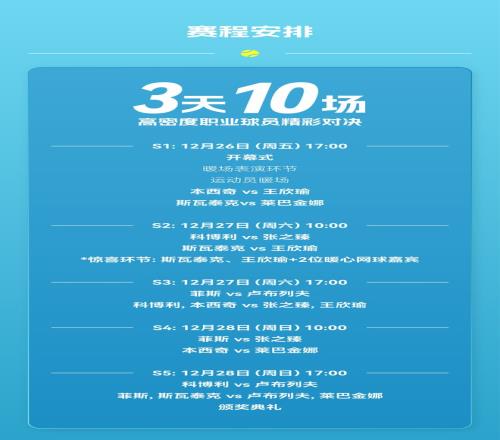 首屆世界網(wǎng)球洲際對抗賽(WTCC)球星陣容堪稱豪華,其星光璀璨程度成為賽事開篇的最大亮點,即便放在整個網(wǎng)壇表演賽的歷史長河中,也堪稱極為罕見的頂級配置。女子球員方面,六屆大滿貫得主斯瓦泰克、溫網(wǎng)冠軍萊巴金娜、奧運金牌得主本西奇與本土寵兒、奧運銀牌得主王欣瑜將聯(lián)袂亮相,陣容堪比“WTA版沙特六后大滿貫”;男子球員方面,兩屆大師賽冠軍盧布列夫、奧運銀牌得主張之臻領銜出戰(zhàn),近年來圈粉無數(shù)的實力新星菲斯、科博利強勢加盟,勢必將碰撞出不亞于拉沃爾杯的精彩火花。 歡迎掃碼購票 首屆WTCC 8位參賽球員累計共8次躋身大滿貫單打決賽,豪取7冠,決賽勝率高達驚人的87.5%。其中斯瓦泰克一人獨攬6座大滿貫冠軍,6進決賽6次封后的戰(zhàn)績在WTA現(xiàn)役球員中無人能及。巡回賽層面,8位球員合計斬獲各級別賽事單打冠軍68座,包含17座1000賽冠軍、27座500賽冠軍、14座250賽冠軍。奧運賽場上,他們同樣戰(zhàn)績輝煌,總計獲得2枚金牌、3枚銀牌和1枚銅牌——這不僅僅是數(shù)字的堆疊,更是頂尖職業(yè)選手多年穩(wěn)定輸出與長期統(tǒng)治力的象征。馳騁職業(yè)賽場多年,首屆WTCC 8位參賽球員累計收獲硬地1030勝40冠、紅土380勝25冠、草地164勝3冠。1574 場職業(yè)賽場勝利的深厚底蘊,足以讓首屆WTCC的每一次揮拍,都成為經(jīng)典瞬間的起點。 高手直接對話,演繹精彩比拼 首屆WTCC參賽陣容中,共有4位球員曾經(jīng)入圍年終總決賽,這一指標被公認為衡量球員全年穩(wěn)定度與競爭力的最高標準之一。斯瓦泰克與萊巴金娜先后在2023年、2025年問鼎WTA年終總決賽冠軍,本西奇曾在2019年入圍深圳WTA年終總決賽并闖入四強,盧布列夫曾在2020年-2024年連續(xù)5年入圍ATP年終總決賽。如此陣容坐鎮(zhèn),WTCC將為球迷在家門口呈現(xiàn)幾乎比肩年終總決賽規(guī)格的巔峰對抗,精彩程度不言而喻。