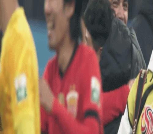 比賽結(jié)束之后,武磊走上了球場,與隊友們一起慶祝。然而,情緒激動的武磊卻在擁抱吾米提江之后哭了起來。在與呂文君慶祝之后,武磊再次雙手擦淚。
