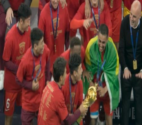 不過,武磊很快調(diào)整了自己的情緒。在頒獎禮上,面對鏡頭,武磊激動的伸出四根手指,示意自己第4次拿到了中超冠軍。而在與王燊超一起舉起獎杯時,武磊還復(fù)刻了梅西世界杯奪冠之后的動作。 |