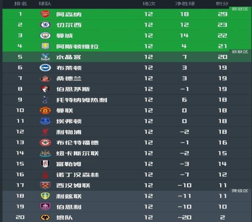 北京時(shí)間11月25日,英超第12輪10場(chǎng)比賽全部結(jié)束,積分榜的形勢(shì)也產(chǎn)生了進(jìn)一步的變化。本輪領(lǐng)頭羊阿森納無(wú)疑是最大贏家,在北倫敦德比中4-1重創(chuàng)死敵熱刺之外,三大爭(zhēng)冠對(duì)手曼城、利物浦和曼聯(lián)均翻車輸球。