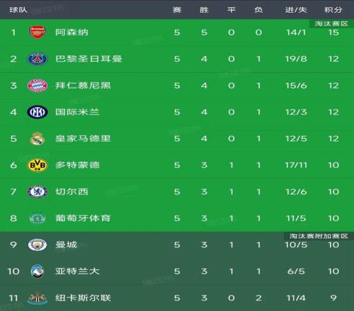 歐冠第5輪結(jié)束了所有比賽,最新積分榜如下!