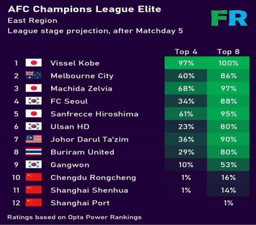 最新出爐的晉級排行榜(上圖)顯示,剛剛擊敗申花的神戶勝利船已經(jīng)100%確定可以晉級到亞冠16強,全部東亞區(qū)12支球隊的晉級排名從高到低依次為:神戶勝利船、町田澤維亞、廣島三箭、柔佛新山、首爾FC、墨爾本城、蔚山現(xiàn)代、武里南聯(lián)、江源FC、成都蓉城、上海申花、上海海港。 從這個排名來看,J聯(lián)賽三隊坐擁前三,中超三強倒數(shù)前三,連近些年表現(xiàn)不佳的澳超球隊也讓人刮目相看,K聯(lián)賽三強的排名都高于中超三強。作為中超主要對手的泰超球隊武里南聯(lián),也幾乎穩(wěn)穩(wěn)晉級。中超已經(jīng)成為這東亞區(qū)榜單中的最弱聯(lián)賽的存在,是不爭事實。