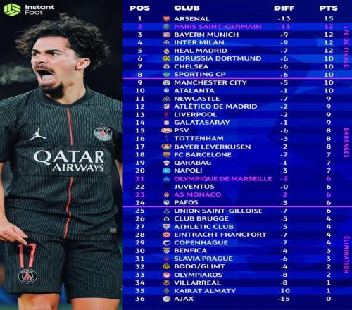 皇家馬德里 雅典苦戰(zhàn)取勝后,皇馬以4勝積12分暫列第四,落后領(lǐng)頭羊阿森納3分。 若想鎖定前八直通16強(qiáng),剩余三輪需再拿4分(總分達(dá)16分);若爭前兩名獲主場優(yōu)勢,則必須贏下剩余9分中的7分(總分≥19分)。 最后三輪將主場迎戰(zhàn)曼城、摩納哥,末輪客戰(zhàn)穆里尼奧執(zhí)教的本菲卡,挑戰(zhàn)不小。 皇馬剩余賽程 皇馬 - 曼城(2025年12月10日) 皇馬 - 摩納哥(2026年1月20日) 本菲卡 - 皇馬(2026年1月28日)