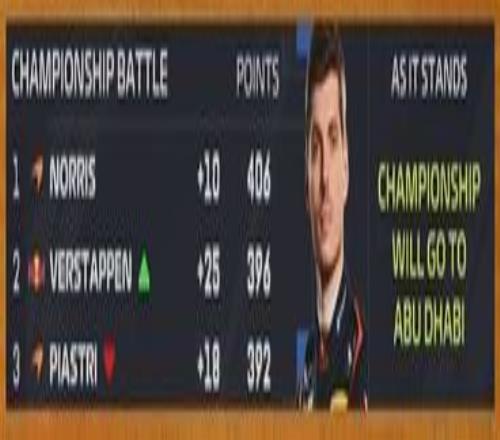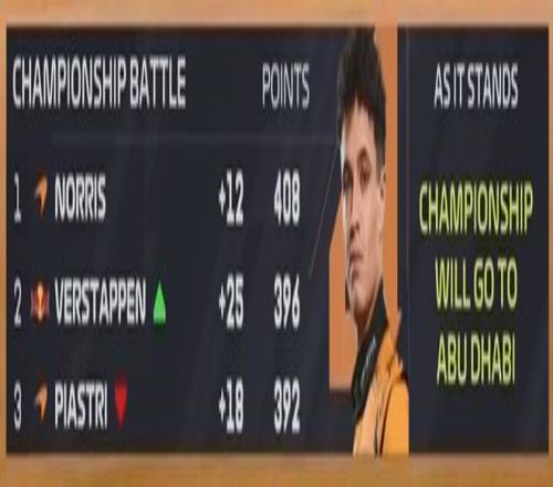 【決戰(zhàn)阿布扎比】諾里斯錯失冠軍點!維斯塔潘卡塔爾奪冠,三者積分僅差16分!