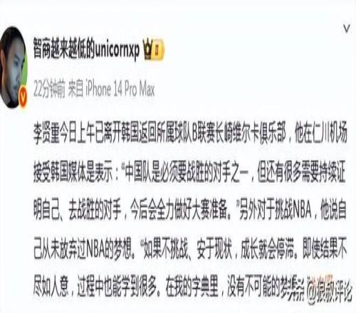 李賢重:中國隊是必須要戰(zhàn)勝的對手之一從未放棄NBA的夢想
