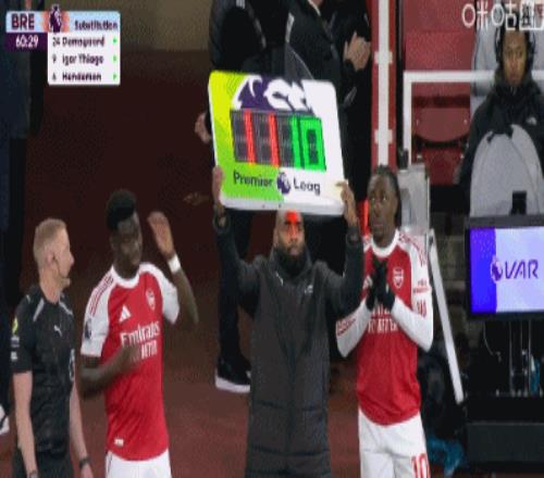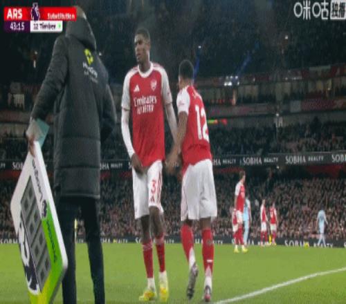 第61分鐘,阿森納換兩人,薩卡和埃澤聯(lián)袂登場(chǎng)