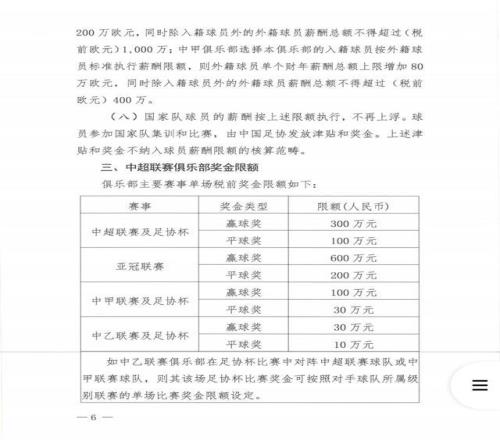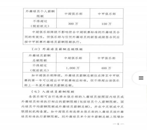 中足聯(lián):中超國(guó)內(nèi)球員薪酬上限500萬元稅前,外援薪酬封頂300萬歐元稅前