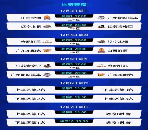 CBA俱樂部杯從去年開始舉辦,今年是第二屆,也是該賽事首次落戶武漢。賽事分為小組賽和淘汰賽兩個(gè)階段,23支參賽隊(duì)伍在小組賽中分為4組在4個(gè)賽區(qū)進(jìn)行,武漢賽區(qū)為D組,6支參賽球隊(duì)為廣東隊(duì)、遼寧隊(duì)、山西隊(duì)、江蘇隊(duì)、廣州隊(duì)及NBL的合肥狂風(fēng)隊(duì)。 賽事從12月3日進(jìn)行至12月7日,武漢賽區(qū)6支球隊(duì)將分上下半?yún)^(qū)展開單循環(huán)較量,隨后通過交叉淘汰賽決出晉級(jí)名額。3日的首個(gè)比賽日共進(jìn)行兩場(chǎng)對(duì)決,揭幕戰(zhàn)在山西汾酒隊(duì)與廣州朗肽海本隊(duì)之間展開,隨后由江蘇肯帝亞隊(duì)與遼寧沈陽三生隊(duì)展開對(duì)決。