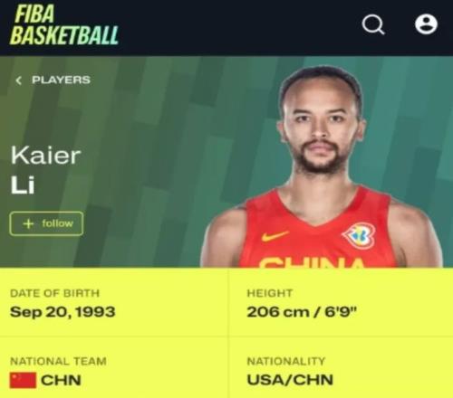 但實(shí)際上,這個(gè)事情并不對,因?yàn)镹BA方面的球員國籍信息一直寫的都是出生地,李凱爾出生在美國,一直寫的都是“美國”。同樣的,克拉克森和唐斯也都寫的是“美國”,因?yàn)樗麄兌汲錾诿绹?,但不影響他們可以代表菲律賓和多米尼加出戰(zhàn)FIBA的比賽。 李凱爾在2023年接受了中國男籃的歸化,正式成為中國男籃的一員。對于中國男籃,李凱爾也算盡心盡力,更不用說他真的有八分之一的中國血統(tǒng),因此歸屬感還是很強(qiáng)的。 不過李凱爾是一個(gè)輔助型球員,并不適合中國男籃的打法。中國男籃需要一個(gè)得分手,需要能夠消化大量球權(quán)的歸化球員,李凱爾并不符合要求。但如果就這么說李凱爾徹底告別中國男籃,那肯定是不對的。 事實(shí)上,在FIBA官網(wǎng)上,李凱爾的國籍信息依舊是“中國”,他如果受到中國男籃的征召,依舊可以選擇代表中國男籃出戰(zhàn)。本賽季,李凱爾已經(jīng)32歲,在NBA也變成了普通輪換球員。