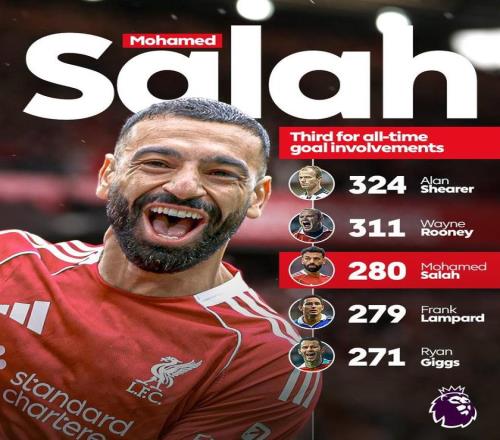 英超第16輪,利物浦主場(chǎng)對(duì)陣布萊頓,下半場(chǎng)薩拉赫助攻?;倏似崎T,至此,薩拉赫英超生涯已直接參與280球,這使得他超越蘭帕德,獨(dú)占英超歷史參與進(jìn)球榜第三位。