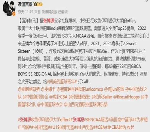 奈斯,非常奈斯。 據(jù)張博源父親透露,張博源收獲伊利諾伊大學(xué)offer。