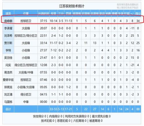 全場比賽,龐崢麟一共打了37分鐘,投籃14中10,命中率達到了71.4%,其中,三分球5投3中,罰球13中11,砍下了34分6籃板4助攻1搶斷!其中,34分也是繼續(xù)刷新了他CBA職業(yè)生涯的得分 新高,在此前,他面對上海隊的時候,砍下了32分。